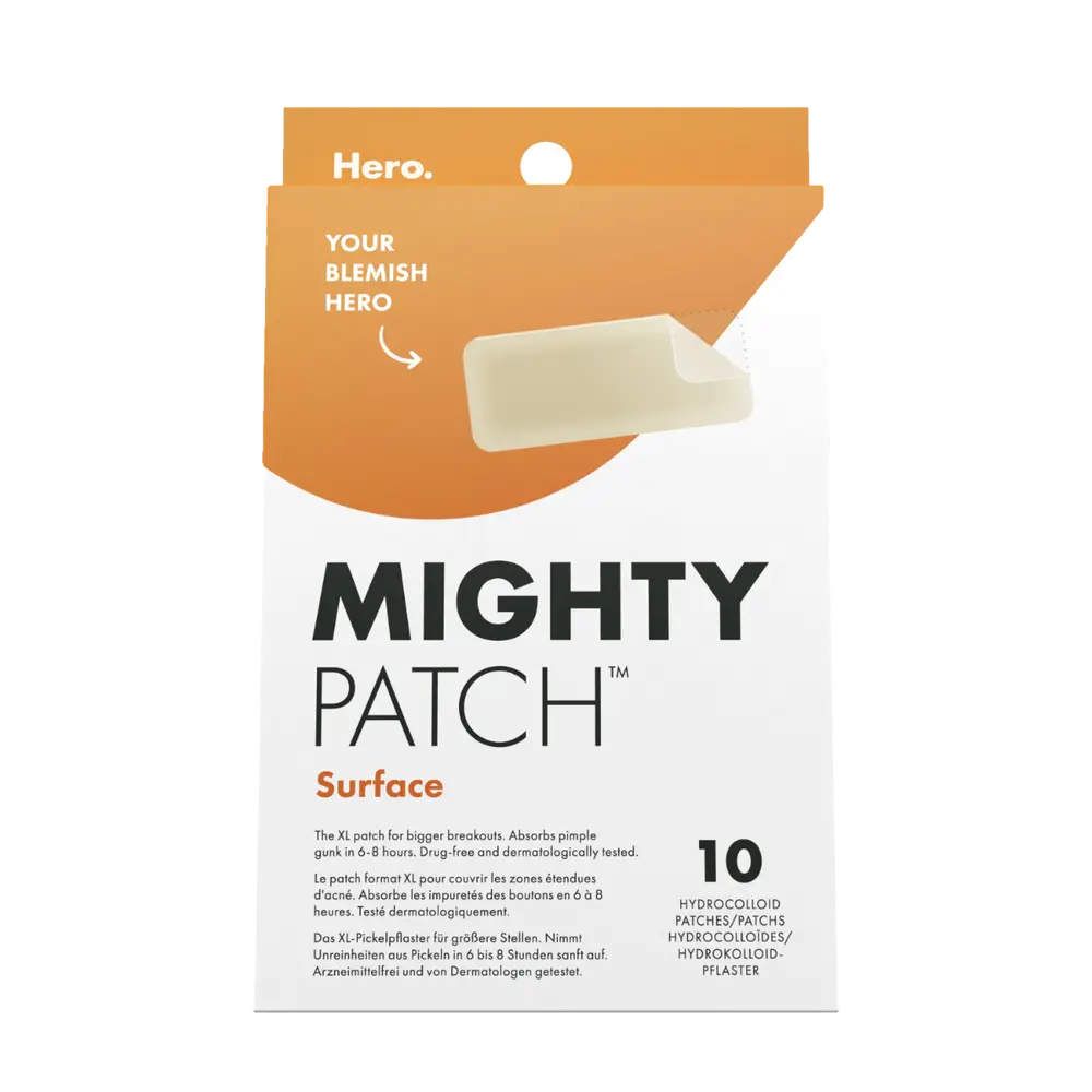 Quand un patch ordinaire ne suffit pas, MIGHTY PATCH™ Surface est le patch hydrocolloïde de taille XL pour couvrir les zones étendues d’acné et réduire l'apparence des boutons en 6 à 8 heures.