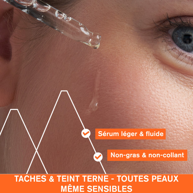 ACTION ANTI-TACHES Actifs dermatologiques : [Mela Technology + 20% complexe Vitamine C + Niacinamide] Ce sérum associe un cœur de...